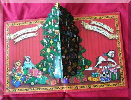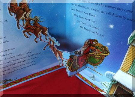 Each page, but one, includes a pop out image which brings the story to life. The other page has a flap to open and see what is inside Santa’s sack.