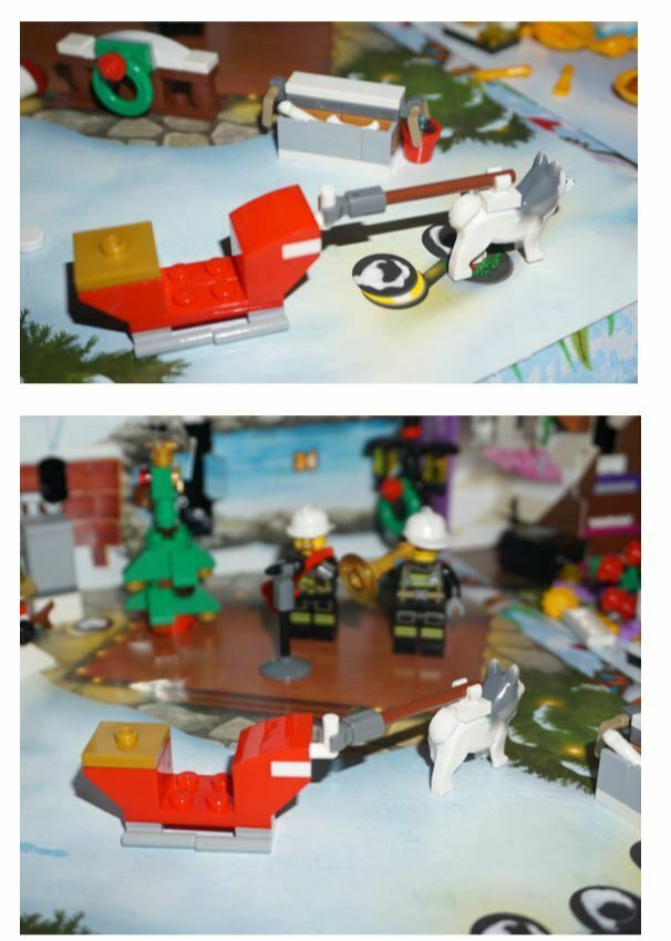 The Lego City calendar produced a sleigh tonight – to which the husky from last night can be attached to pull it along.