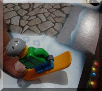 Lego person on a snow board