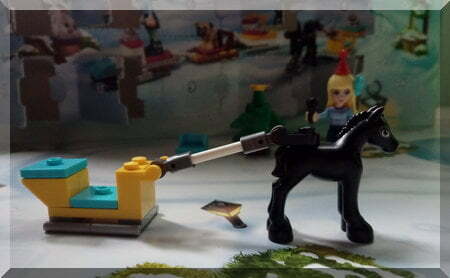 Likewise, my daughter was excited to find a ‘one horse open sleigh‘ to attach to the horse from day 22.