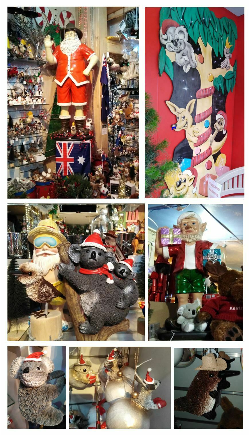 Collage of Aussie themed decorations at Santa's Place