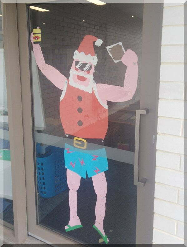 I don’t know the details, but apparently the school is doing it as a competition between classes (and resulting in some kids taking it a bit too seriously rather than in the spirit of Christmas). And then it turns out that they aren’t allowed to stick anything on the glass doors in the new classrooms so some classes decorated a large board instead!
