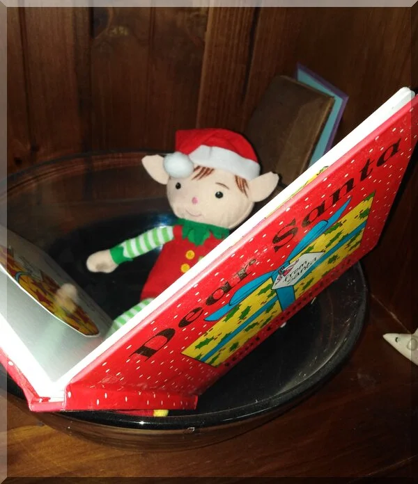 This morning we found Tinkles sitting in a serving bowl reading Dear Santa 🙂