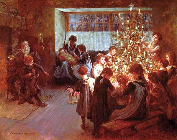 Albert Chevalier Tayler’s “The Christmas Tree” from 1911 is the type of traditional family Christmas many of us imagine for Christmas past.