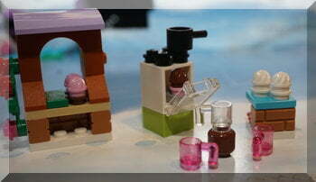 Strangely enough for a snow scene, Lego Friends today produced an ice-cream stall! Complete with mistletoe, two ice-creams and some money, Miss five enjoyed building the stall.